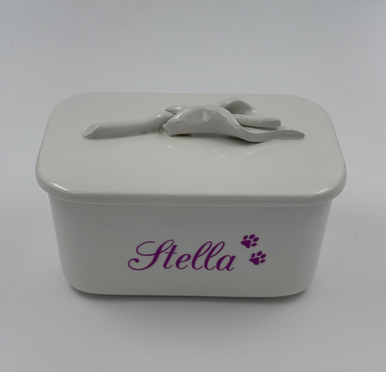 M3 - Cofanetto Carrara con porta fotografia calamitato, nome, date e zampette (stampa foto esclusa)