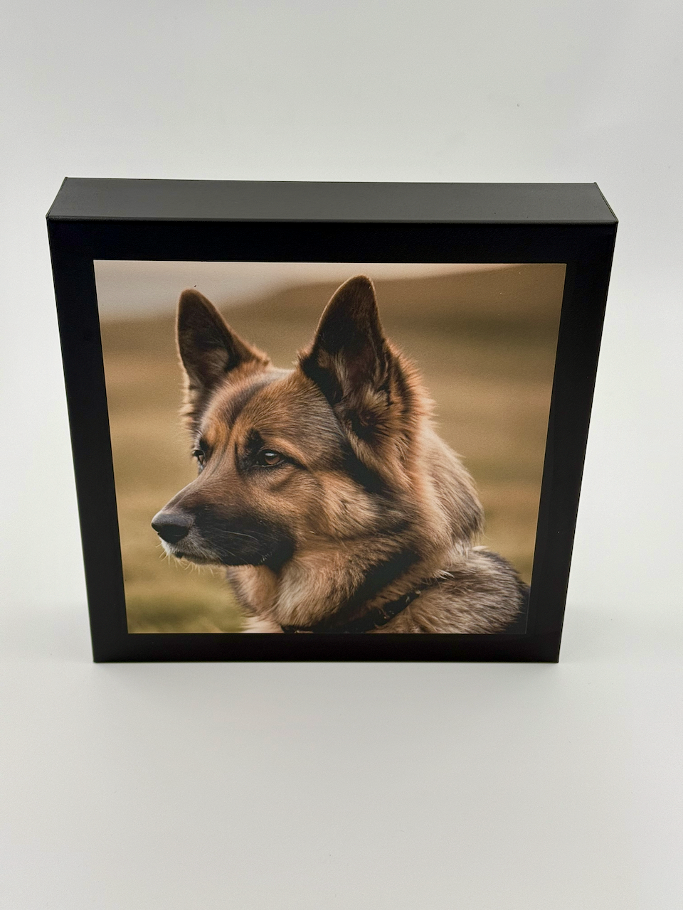 M3 - Cofanetto Carrara con porta fotografia calamitato, nome, date e zampette (stampa foto esclusa)