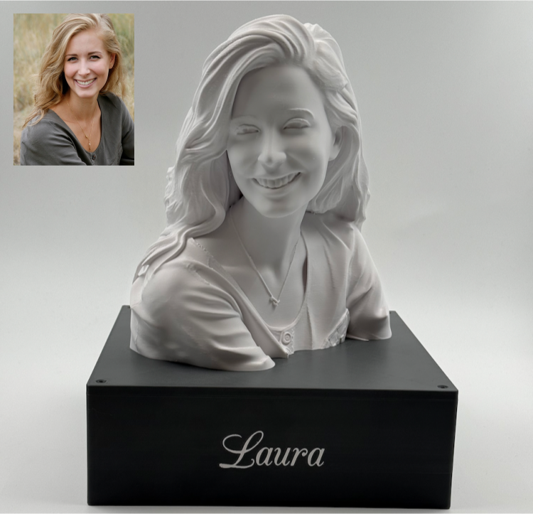 Descrizione: Urna tridimensionale in fibra composta da una base contenitiva per le ceneri e una statua che riproduce fedelmente le caratteristiche distintive dell’animale, a partire da una fotografia fornita dal cliente.