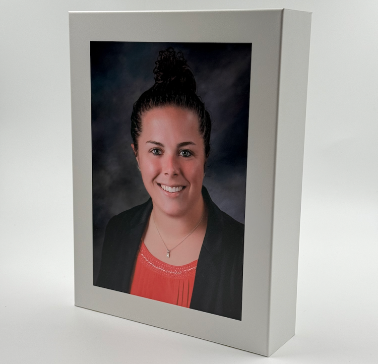 : Urna Quadro 33 x 25 colore bianco con fotografia grande (fotografia 27 x 21 cm). Stampa professionale ad ultravioletti.